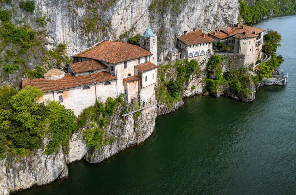 Na zapadnoj obali jezera Mađore, tamo gde se stene strmoglavljuju u njegovu vodu, uzidan je jedan od najfascinantnijih sakralnih kompleksa u Italiji – Santa Caterina del Sasso.
